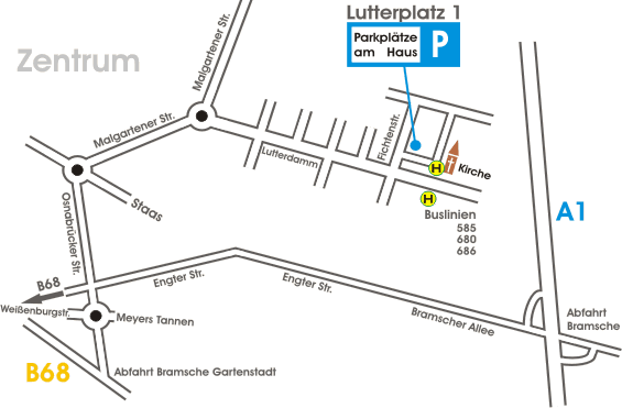 Sie erreichen unsere Praxis bequem mit dem Bus und dem Auto.